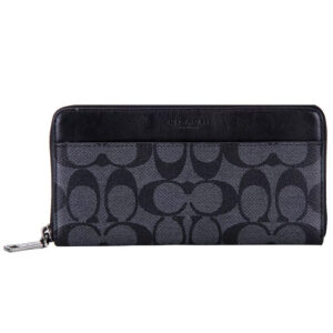 COACH F58112 男士黑灰色PVC配皮長款錢夾