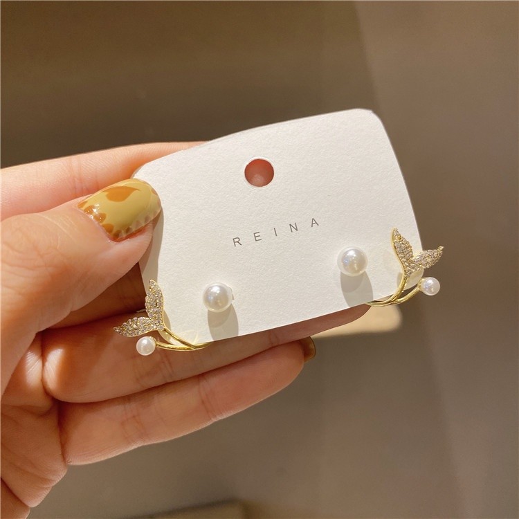 韓國東大門輕奢珍珠耳環/感水鑽魚尾耳環