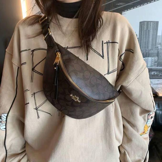 COACH 馬車經典LOGO PVC防水皮革肩背/斜背兩用腰包。