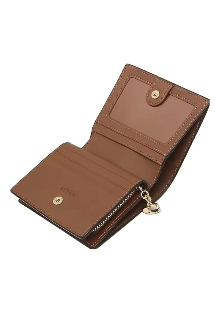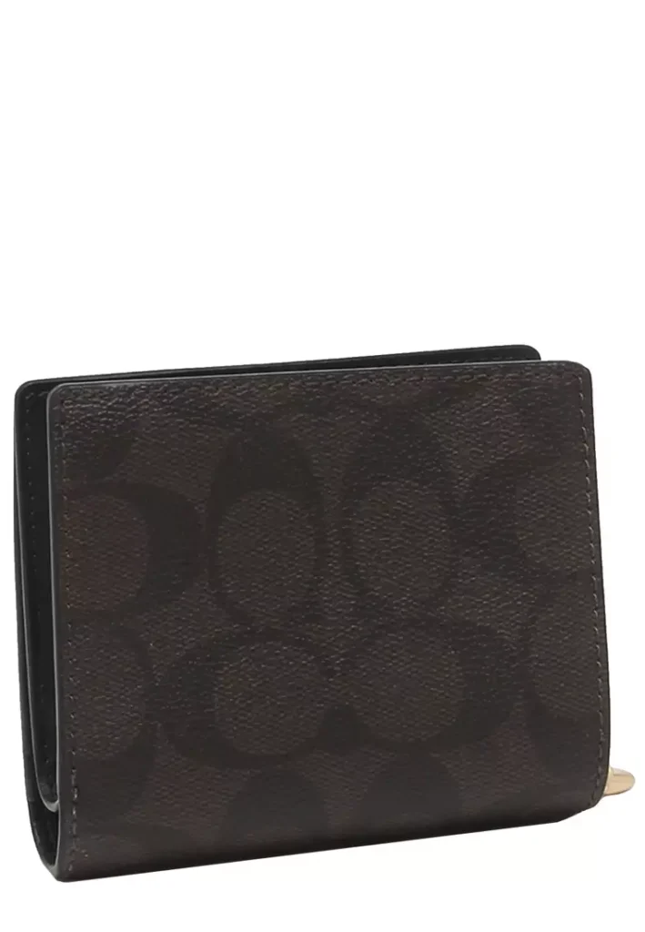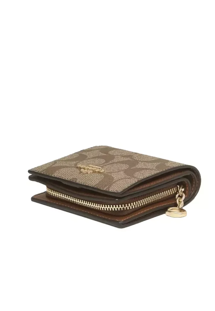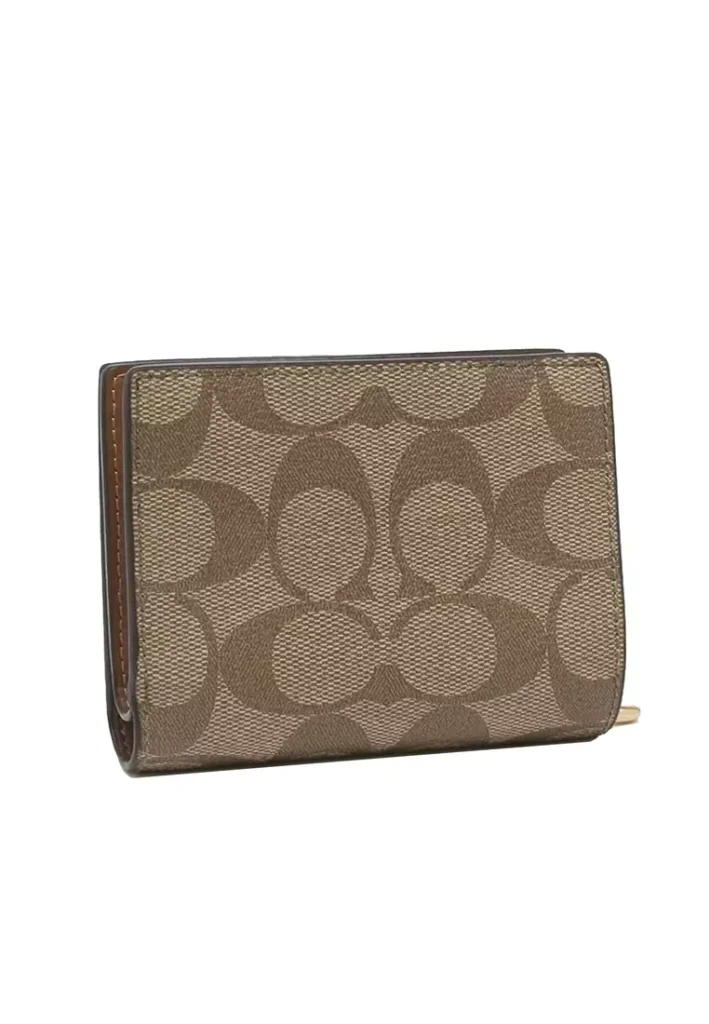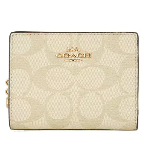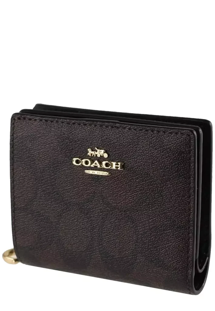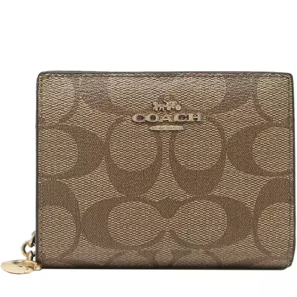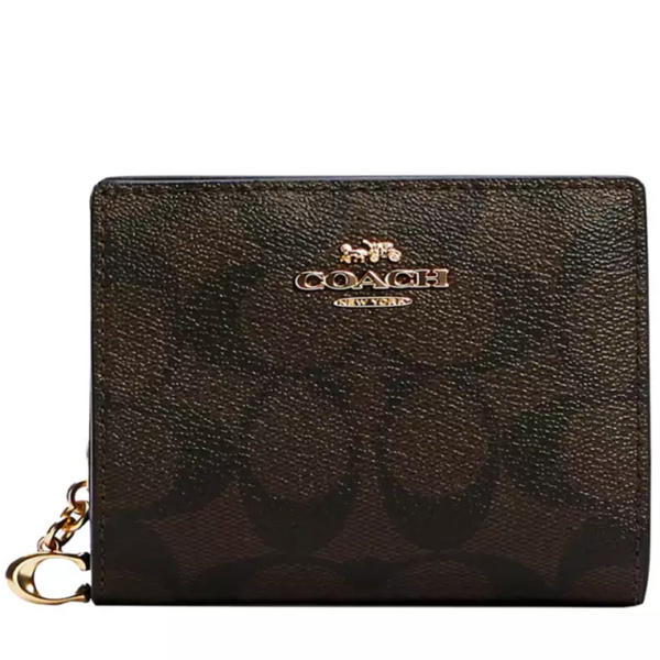 COACH C3309 C Logo拉鍊塗層帆布暗扣二折短夾