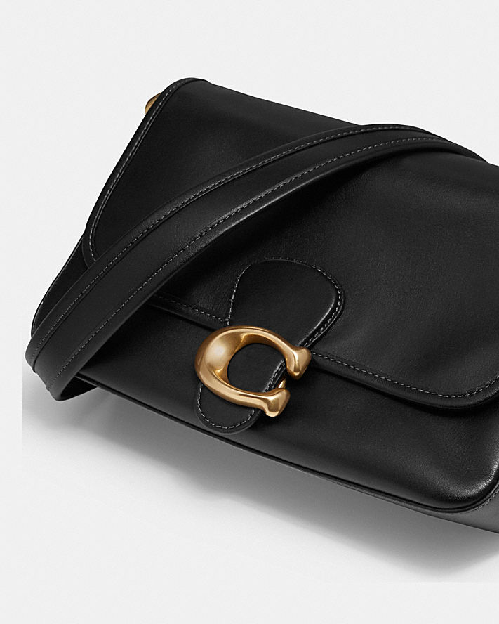 TABBY 手袋觸感無比柔軟,靈感來自七〇年代一款結構挺立的經典手袋,但新款設計的風格較為鬆垮隨興。手袋是以光滑皮革打造而成,綴有經典 SIGNATURE 金屬配件,內外都附有可完美收納個人物品的拉鍊插槽。手袋配備兩條可拆卸式肩帶,提供手持、短肩背或斜背等不同持用選擇。