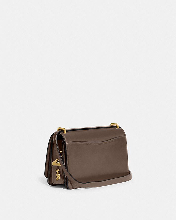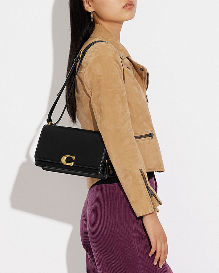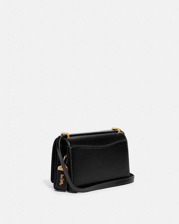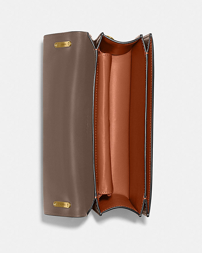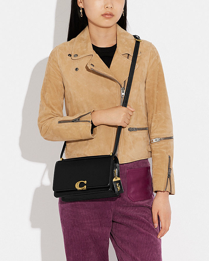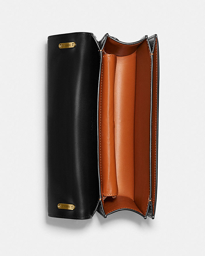 別被名字誤導了,這款手袋看起來俐落簡約,但也相當優雅知性。本款正面翻蓋式手袋採用 C 插銷閉合設計,是以奢華精緻皮革打造而成,皮革閃耀極致光芒。手袋附有兩格收納隔層、一個內部搭扣閉合插槽,以及一條能調整長度的肩帶可供斜背,絕對能擄獲您的心。