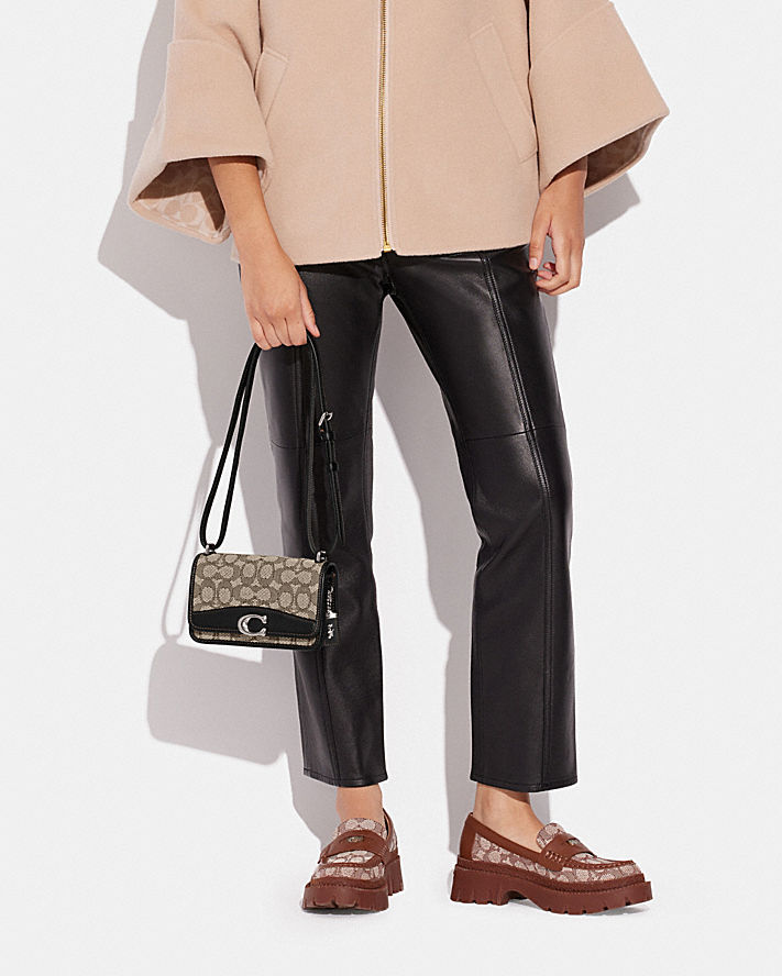 COACH CD709 標誌性提花翻蓋斜挎單肩包