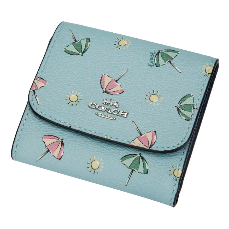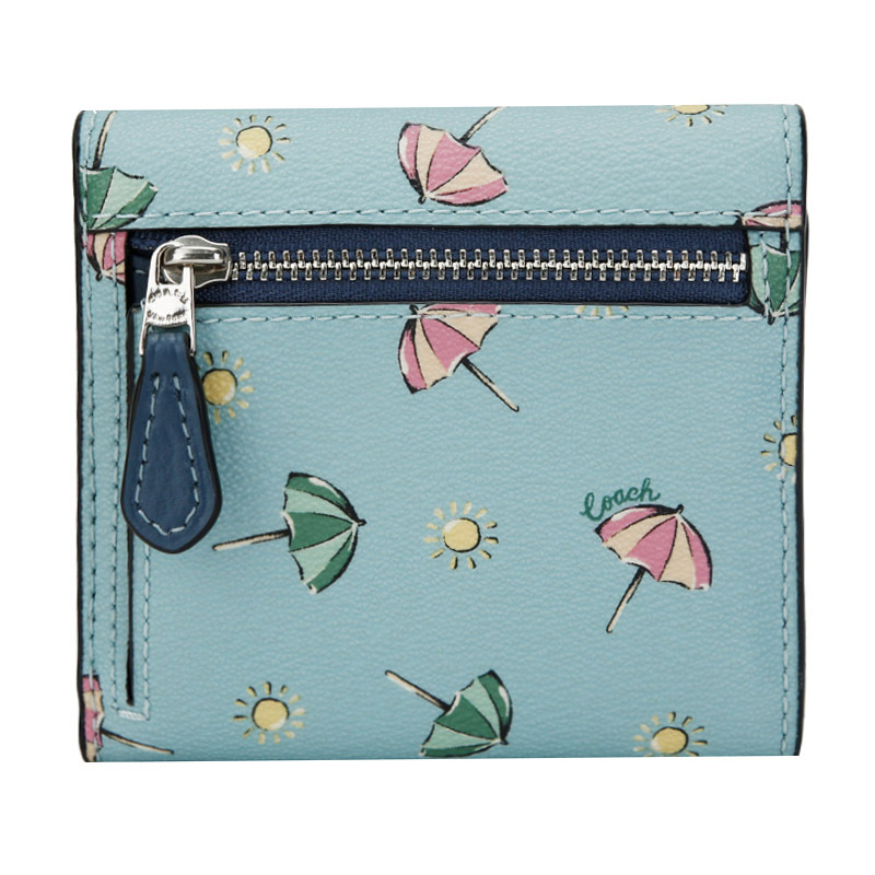 COACH F73481 女士藍色雨傘款皮革短款錢包
