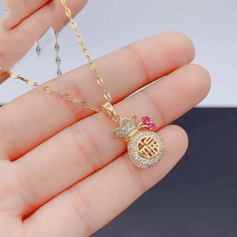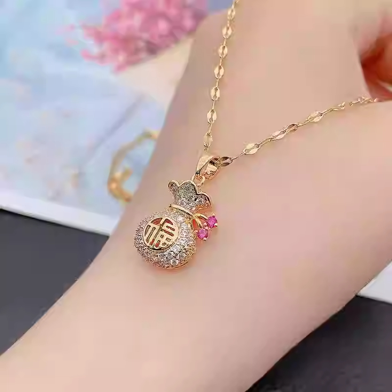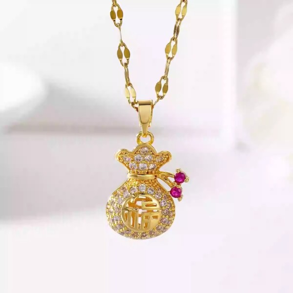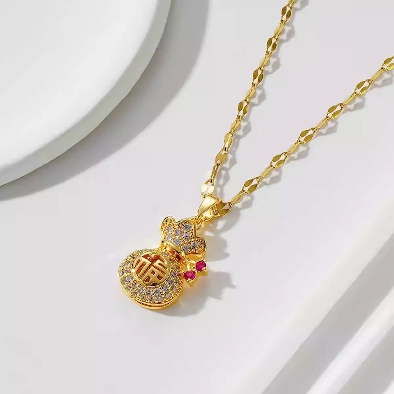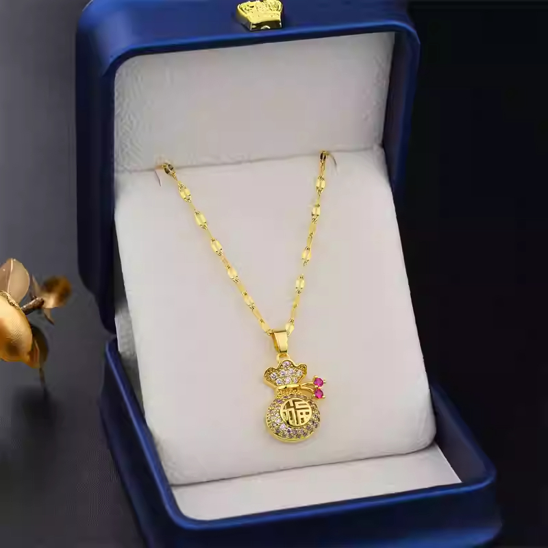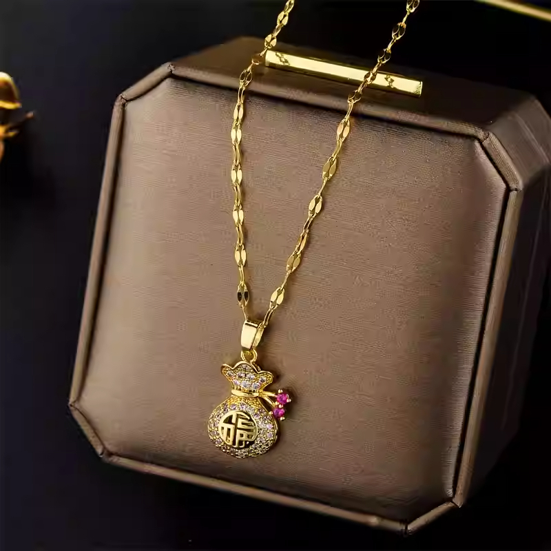 HT 鈦鋼招桃花招財金錢袋項鍊
