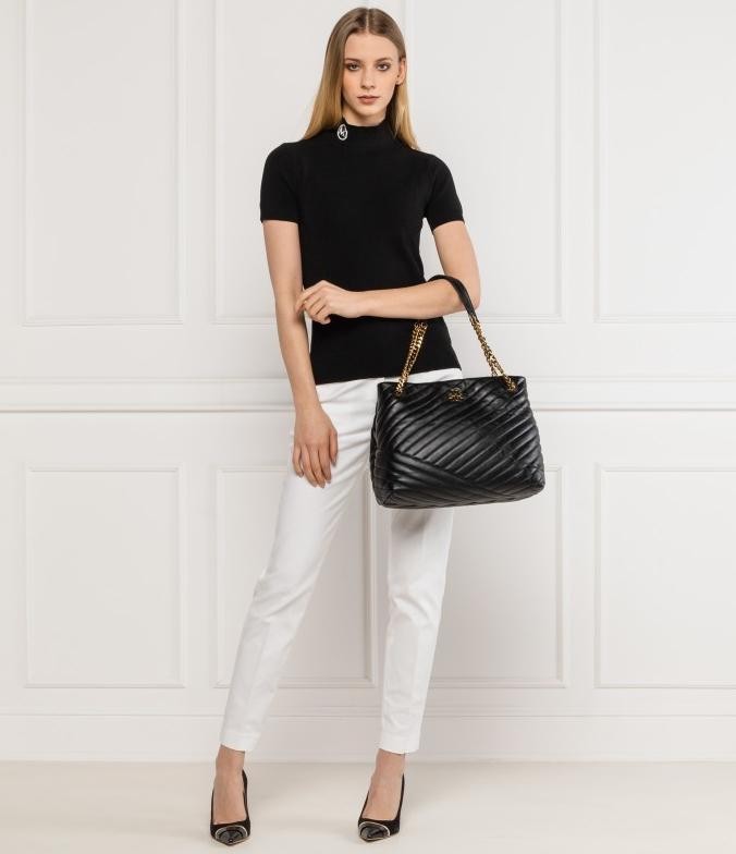 特色:時尚簡約設計,可容納 7 吋平板,磁扣設計,金屬鏈條肩帶(24 cm 落肩),配有皮革護肩墊以提升舒適度。內部設有一個中央拉鍊隔層和一個拉鍊口袋